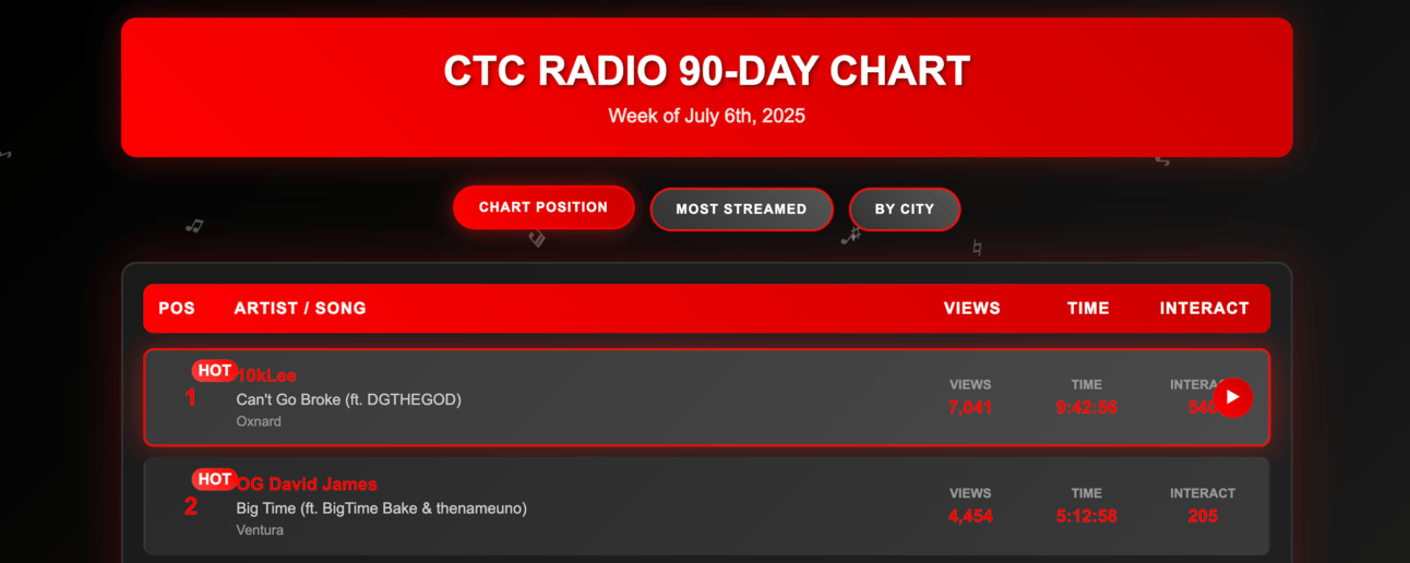 We just updated the CTC Radio Chart — and added a Top 5 of the last 30 days for even deeper insight.